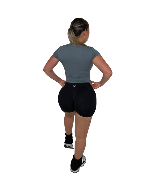 Midnight Black Seamless Contour Scrunch Butt Biker Shorts